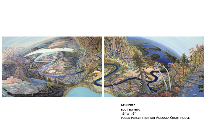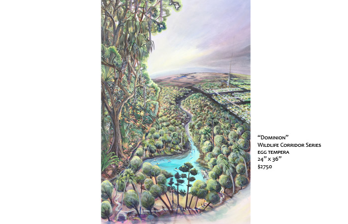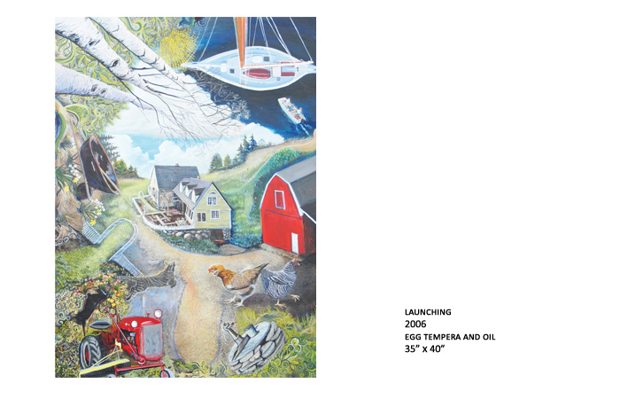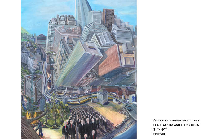 Using egg tempera, artist Amy Peters Wood most recent works knit together intersecting perspectives, near and far, above and below, before and after, imagined and real. These juxtapositions ultimately consolidate to form a single image, one perceived from an indeterminate vantage point. Trained in both Veterinary medicine and art, Wood chooses a dialogue between her connection to nature and a shifting perspective, creating planes which recede, tilt and plunge- reinforcing a vast or close dichotomy, and ultimate uncertainty to the spatial dimensions within the painting. |